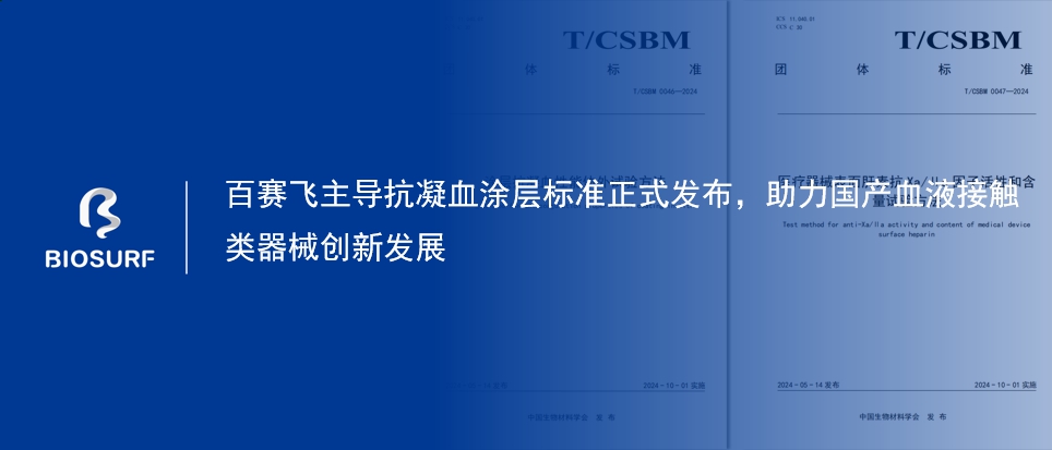 On May 16, 2024, under the support and guidance of the Chinese Society of Biomaterials, two anti-coagulant coating-related group standards led by Besaifei, T/CSBM 0046-2024 'In vitro test method for anti-coagulant performance of coatings' and T/CSBM 0047-2024 'Test method for anti-Xa/1a factor activity and content of heparin on the surface of medical devices' were officially released. Both standards were drafted by Dr. Li Dan, general manager of Baisaifei, and were drafted jointly by Jiangsu Baisaifei Biotechnology Co., Ltd., Baiinterface Interface Inspection and Testing Technology (Suzhou) Co., Ltd., Sichuan Medical Device Biomaterials and Products Inspection Center Co., Ltd., Shenzhen Institute of Drug Inspection (Shenzhen Medical Device Testing Center), Shandong Medical Device and Drug Packaging Inspection Institute and other professional research institutions and enterprises.