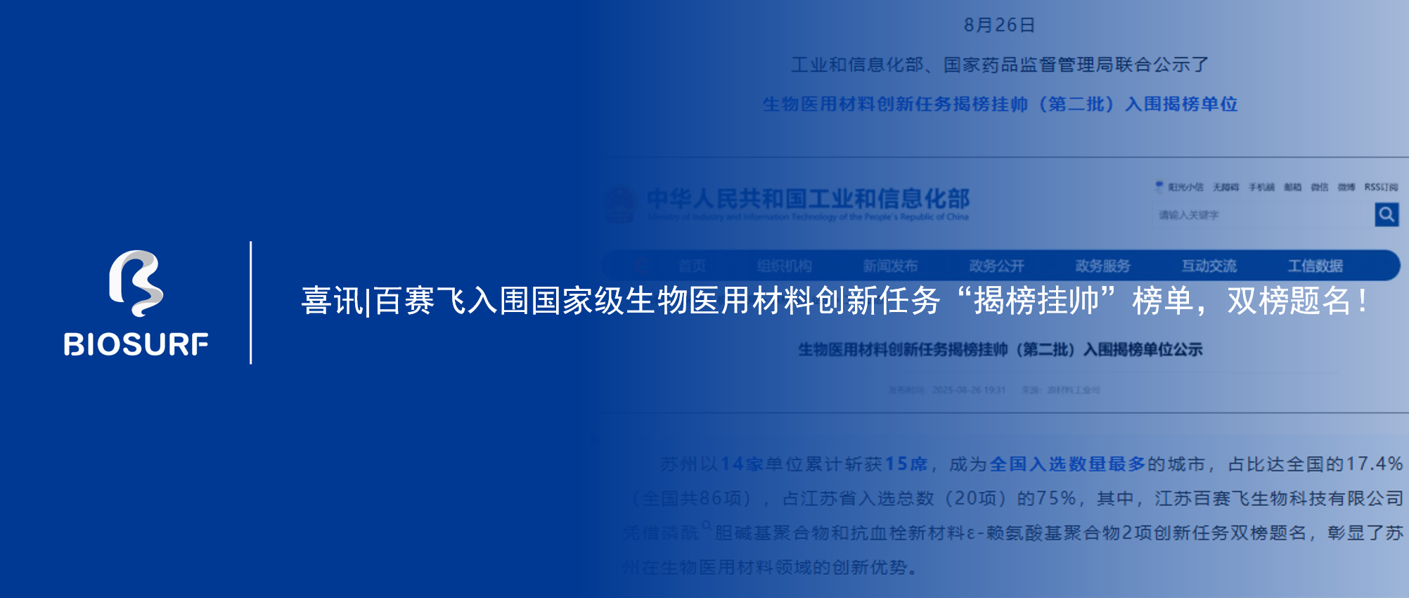 Good news | Baisaifei was shortlisted for the national biomedical materials innovation task 'unveiling the list and taking charge' list, and was named on the double list!